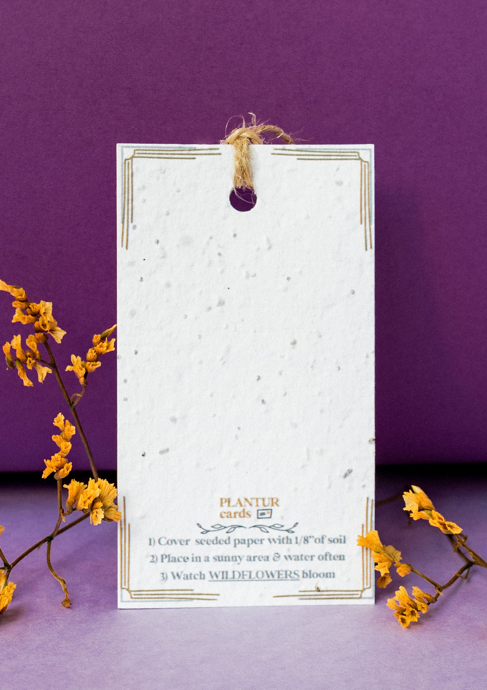 10 Pack of 3.5' x 2" Gift Tags. Planting instruction printed on tags. String included.